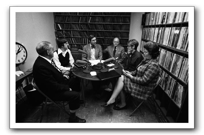 This picture was taken in Studio A. On the other side of the wall to the right is the parking lot, to the left is the control room. At the time Studio A was a record library, office and news/interview studio.