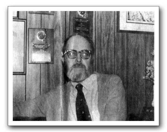 Arch Harrison in the lobby of WJMA. This picture is from an October 14, 1979 article by Rob Eure.This picture is one of a very few that show some of the many news awards WJMA received.