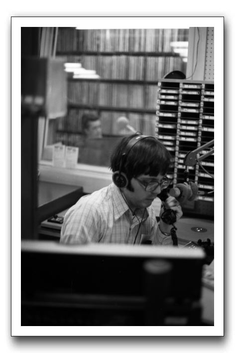 A 1982 photo of Phil Goodwin in the WJMA control room hosting Swap Shop. Out of focus through the window behind Phil is Swap Shop producer Marisa Murphy. Swap Shop was the creation of John LeGarde and began in October 1963. It ran until the mid-1980s and ended sometime after Arch Harrison sold WJMA in 1984.