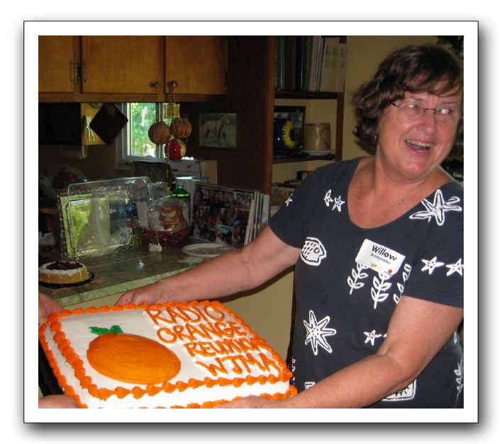 2009 WJMA Reunion at Cedar Hill Farm in Gordonsville, VA; June 20, 2009Willow Drinkwater with the Radio Orange party cake.photo by Russ Roberts