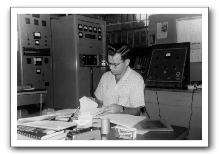 In 1949 Talmadge England was WJMA's Chief Engineer after Warren Braun had built the station. This photo is from 1956 when he was the Chief Engineer with WMIK in Middlesboro, Kentucky. He left there in October of '56 to take a job with Westinghouse in the Battis Atomic Power Lab in Pittsburgh, Pennsylvania.