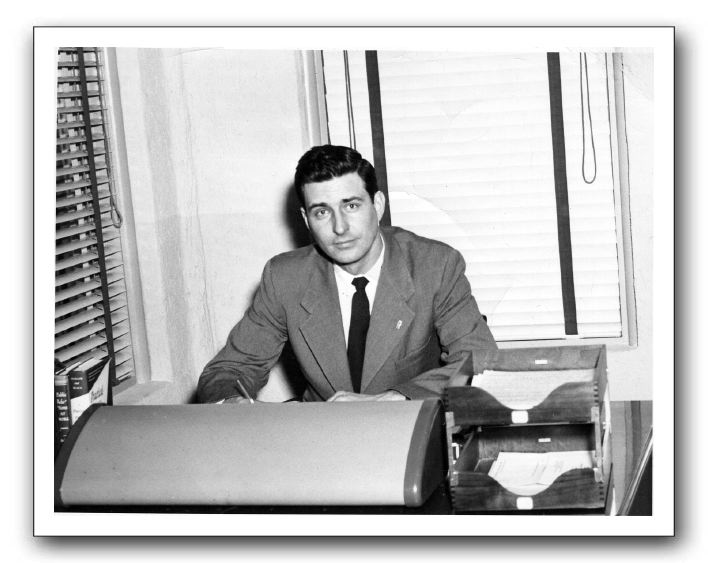 The location of this photo is not certain. It's dated 1950 which indicates it may have been taken in the WJMA offices. That's Art Livick, who was WJMA General Manager from sign on September 10, 1950 through March 1, 1952.
