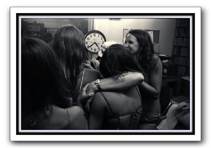 Ted cheering section is (l-r) ??? ???, Marion Gardner, Lynn (Jones) Rogers, and Anne (Colvin) Jones.