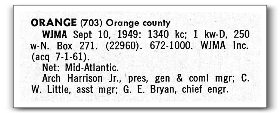 This was the WJMA listing in the 1969 Broadcasting Magazine yearbook of radio and television stations.