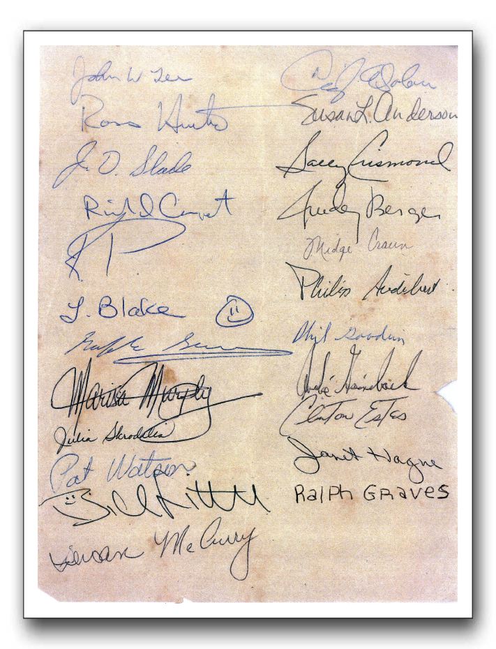This list of staff signatures was collected by Mark Shepherd. The year was probably 1986.contributed by Mark Shepherd