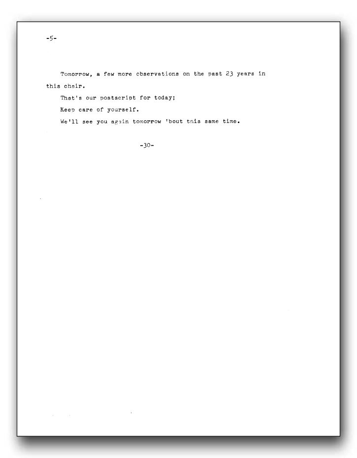 This is page five (of 5 pages) of Arch Harrison’s next to last Postscript to the News on March 29, 1984. The sale of WJMA would be effective April 1, 1984.