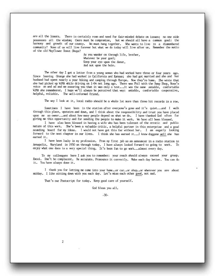 This is page two (of 2 pages) of Arch Harrison’s last Postscript to the News on March 30, 1984. The sale of WJMA would be effective April 1, 1984.