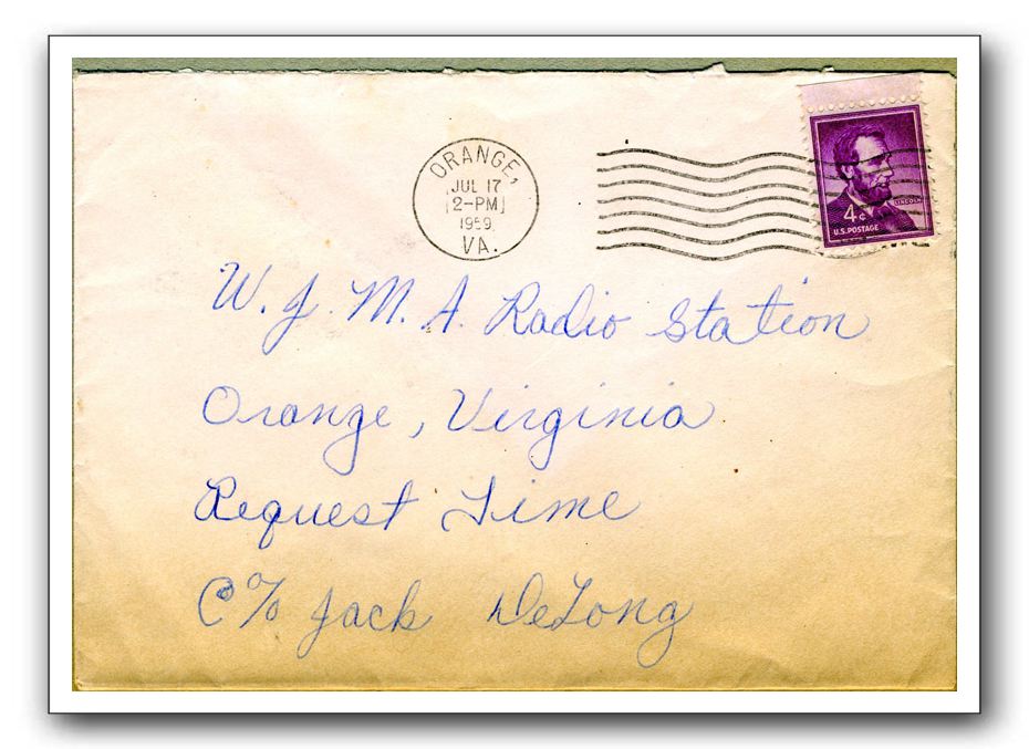 An envelope from July 1959 requesting a song on WJMA.