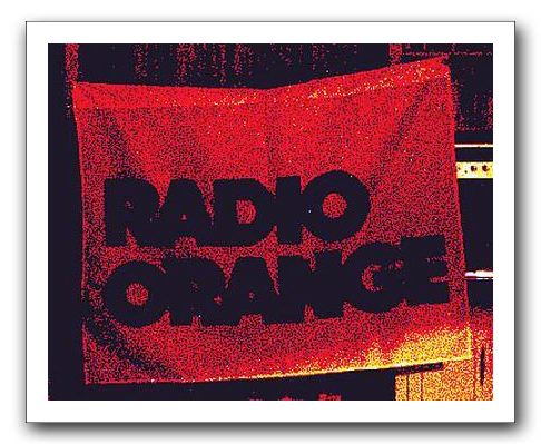 Shortly after WJMA adopted the name "Radio Orange" and a new logo was designed in 1977. This banner was made by Carol Hunter. It was used for a short time at the WJMA broadcast booth at Porterfiled Park. Its whereabouts now is unknown.