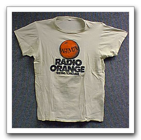 This WJMA t-shirt was created for WJMA's entry in the 1977 Orange Christmas parade. The station's entry was a group of about 50 Prospect Heights Middle School students carrying transistor radios tuned to WJMA which was airing Christmas music. The group was called the WJMA Marching Transistor Band.