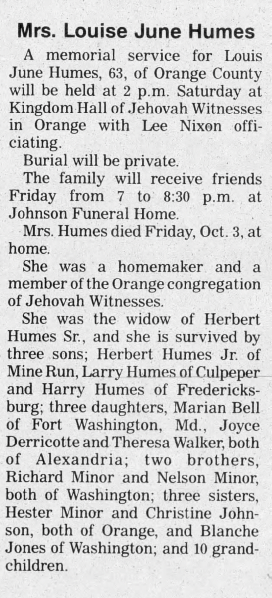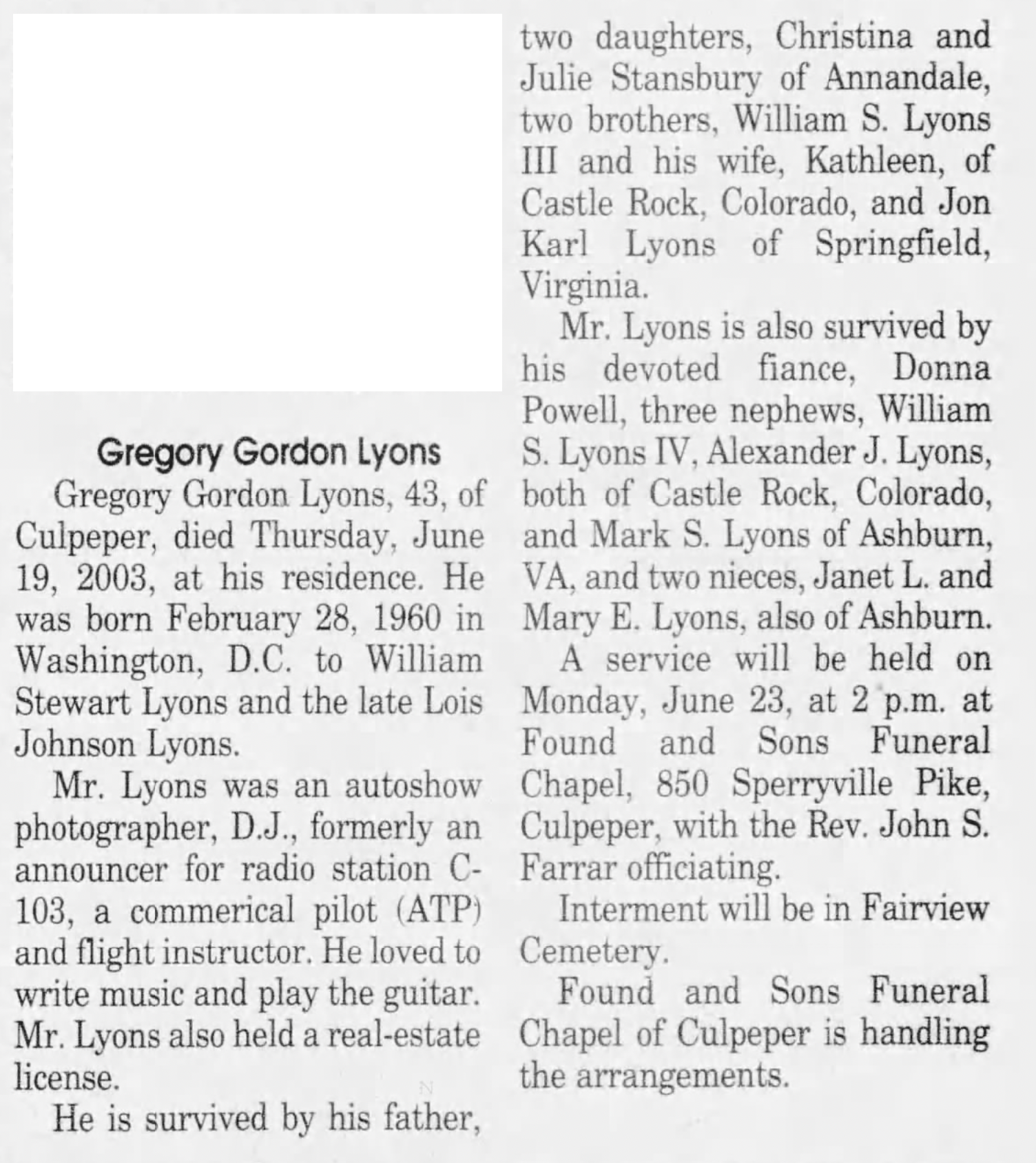 newswriter ABC News, Washington DC; owner Sleepy Hollow B&B, Gordonsville VA ; retired |