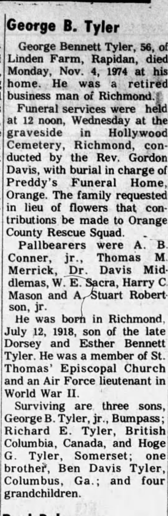 Saint Anne's School, Charlottesville, VA; Assoc Headmaster James River Day School, Lynchburg, retired |