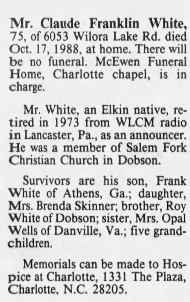 WCVA 1954–58; WDNE Elkins WV 1960; Civil Aeronautics Administration |