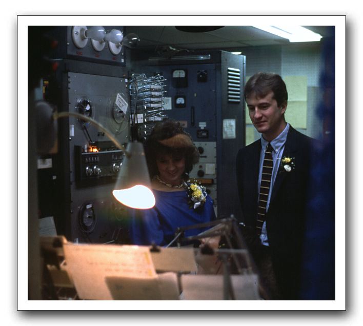 In May of 1985 the WJMA Sales Department cooked up a promotion called "Win a Date with KP". "KP" was the night DJ Ken Pratt who went by KP on the air. Here's KP with contest winner Julie Mosticone taking a tour of the WJMA control room.