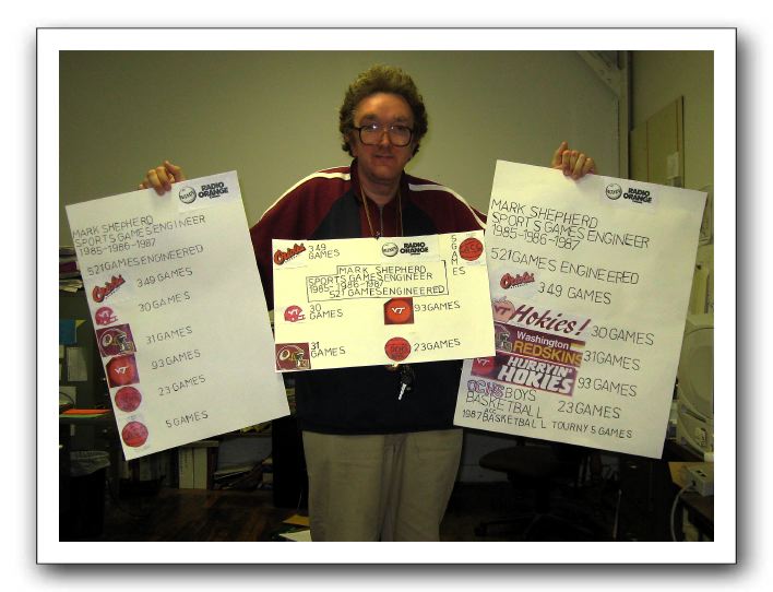 During Mark's time at WJMA, he worked over 500 broadcasts. Mark says after some recalculation, his sign is wrong. It should be 510 games.