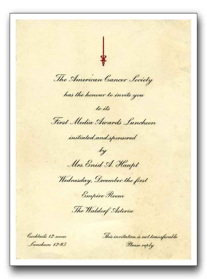As an American Cancer Society award winner, WJMA was invited to a November 7, 1975 luncheon in New York at the Waldorf Astoria.contributed by Ross Hunter